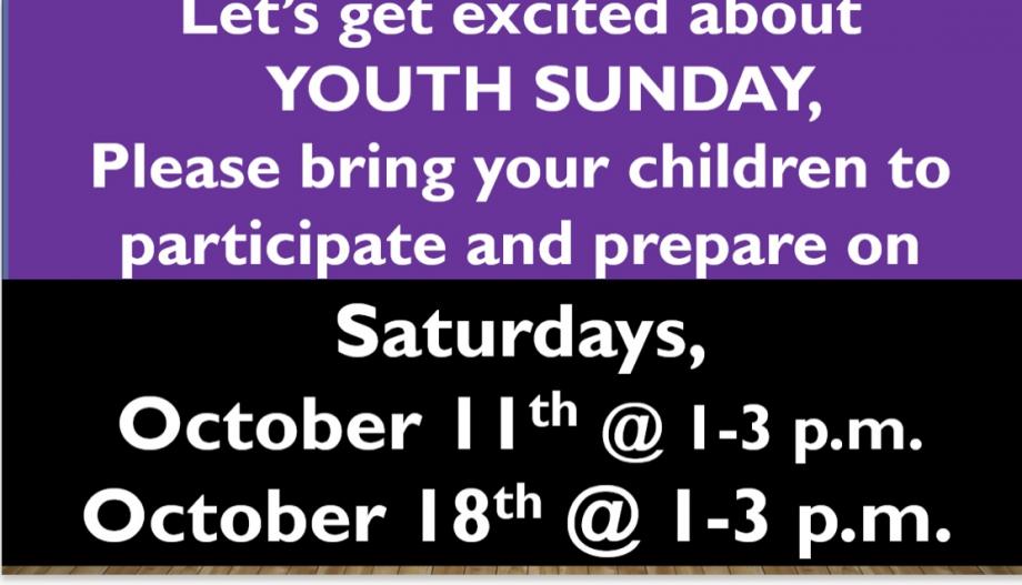 On Saturday, Parents and Grandparents, please plan to bring your child out on Saturday from 1-3 pm to prepare for Youth Sunday and rehearse for the Youth Choir. Lunch will be served immediately after rehearsal.
